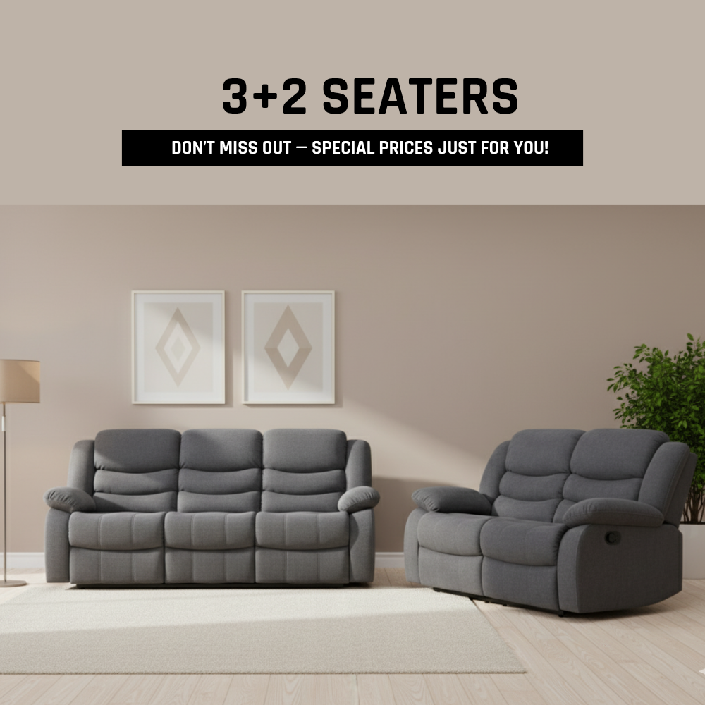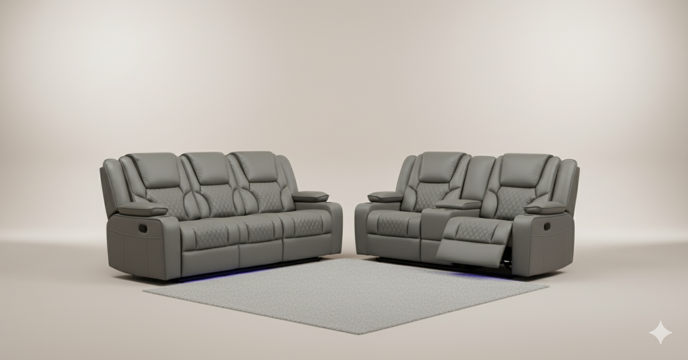 Parada 3+2 Seater Leather Electric Recliner Sofa Set – (Available in Black & Grey)