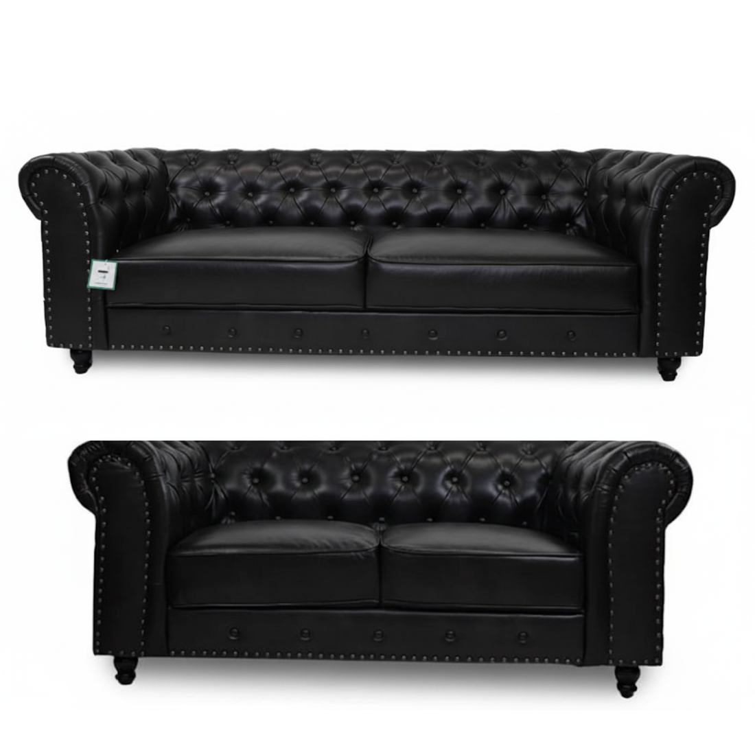 Chesterfield 3+2 Seater Sofa Set — Vintage Bonded Leather, Deep Button Tufted Design Description Add...