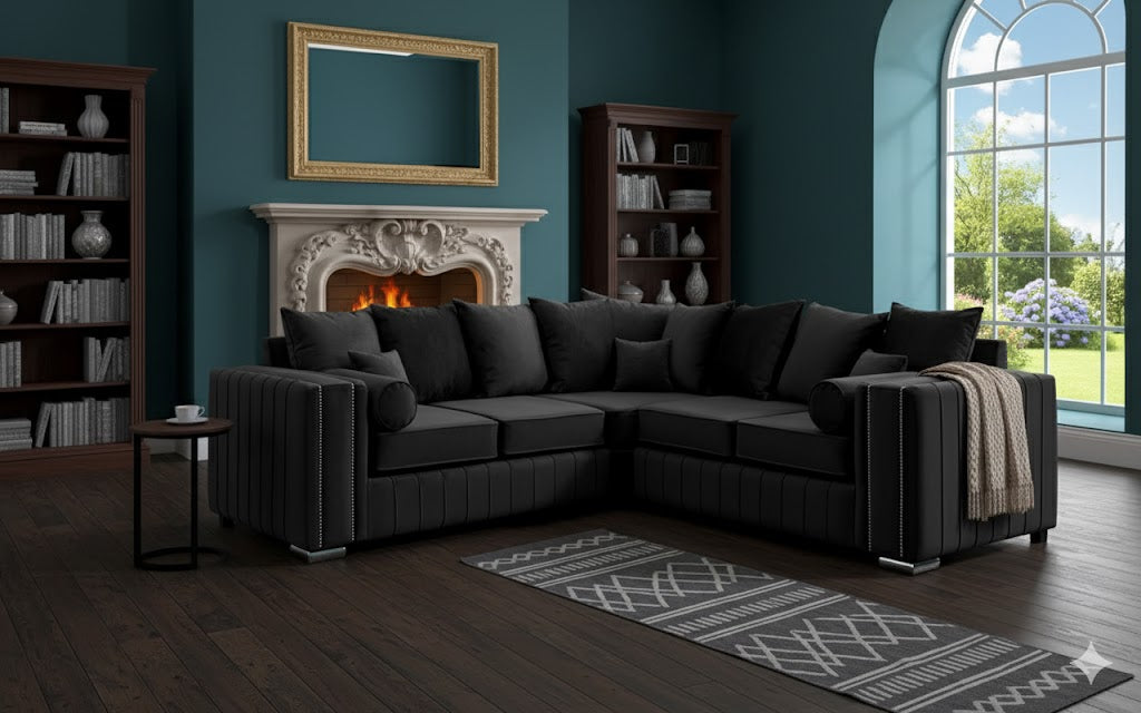 Lilly Velvet Corner Sofa – Luxury U-Shape Design with Deep Cushions