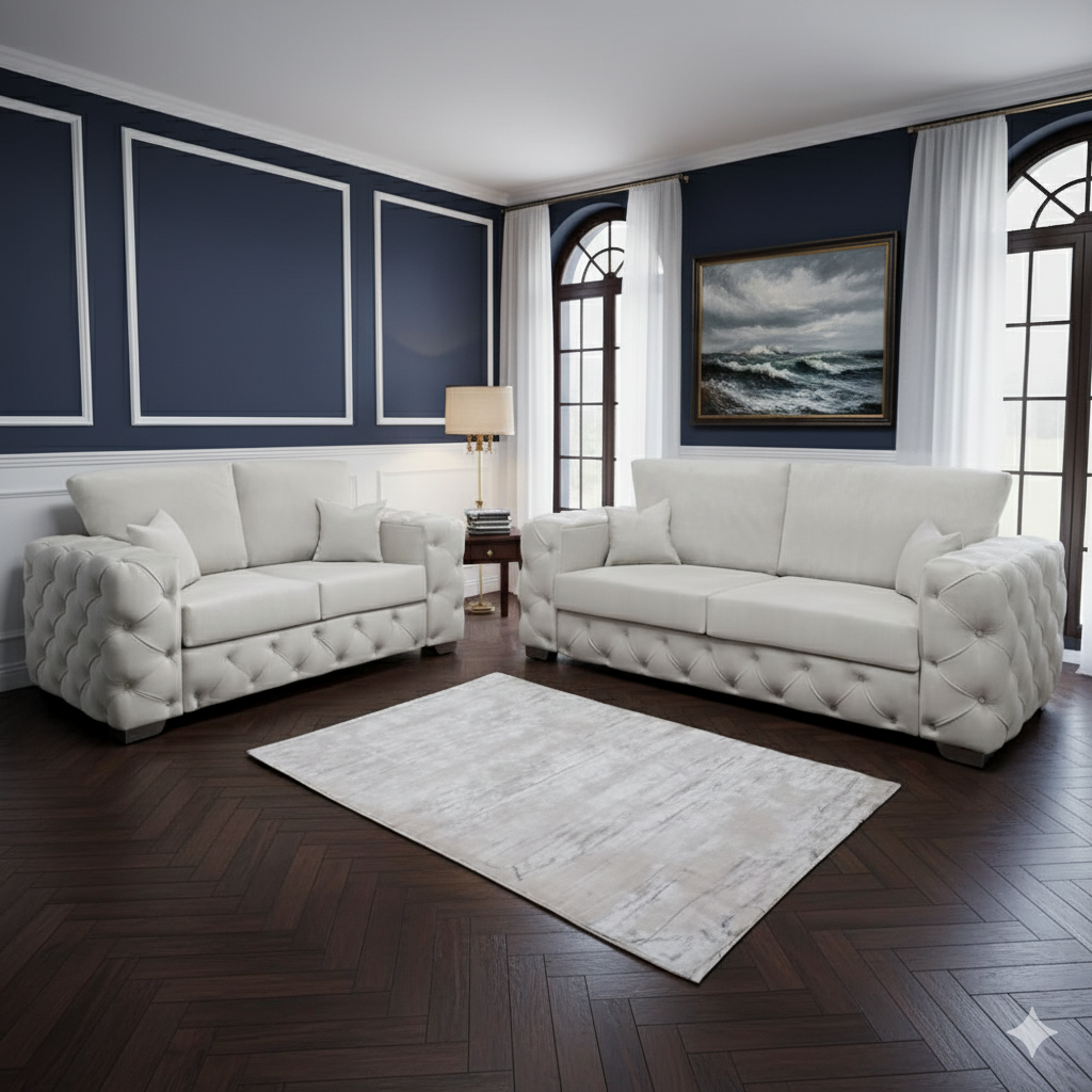 The Ashton Sofa Set redefines living-room elegance — ideal for families, guests, and cosy nights in. Its timeless Chesterfield design, combined with modern comfort and neutral color options, makes it a centrepiece that elevates any interior.