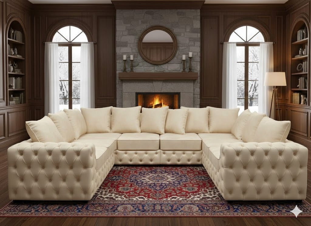 Ashton Chesterfield U-shape Fabric Sofa Set – Timeless Luxury for Modern Living