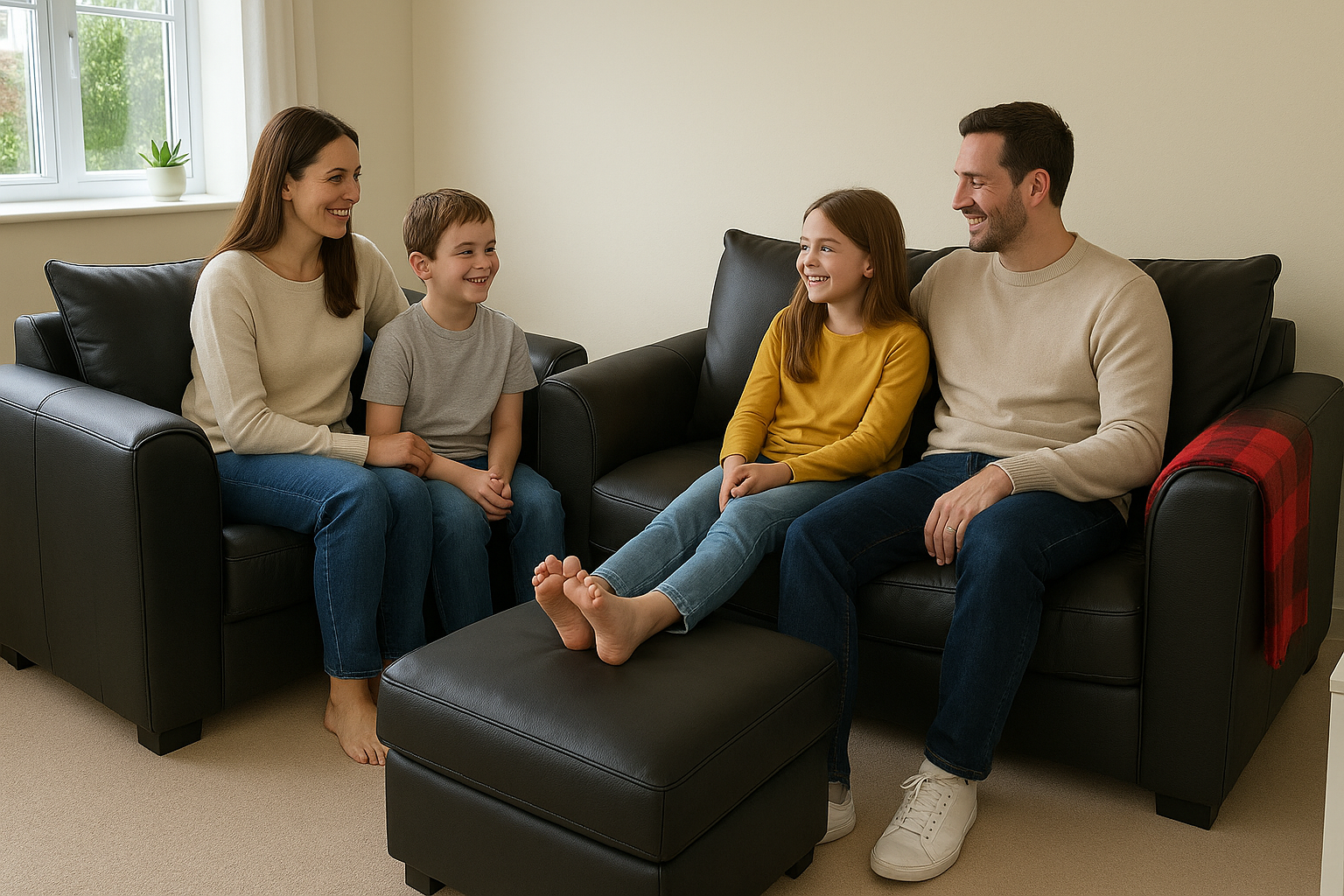 Crafted with high-quality faux leather upholstery, it offers a sleek, easy-to-clean surface resistant to everyday wear. The thick-padded seats, wide armrests, and soft back cushions ensure long-lasting comfort for the entire family.