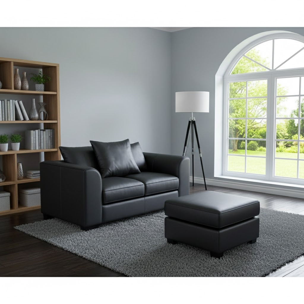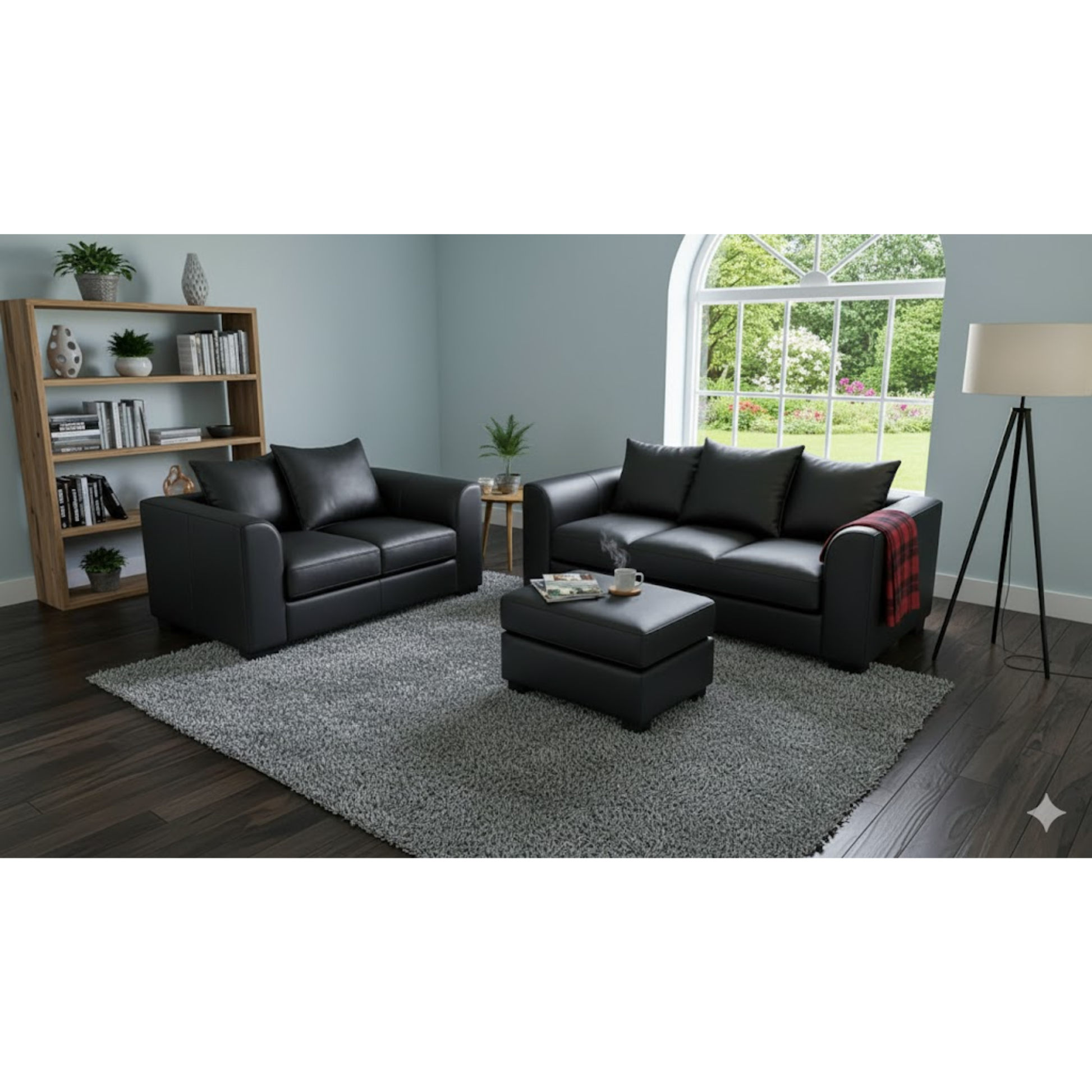 Luxury Black Faux Leather 3+2 Seater Sofa Set with Footstool