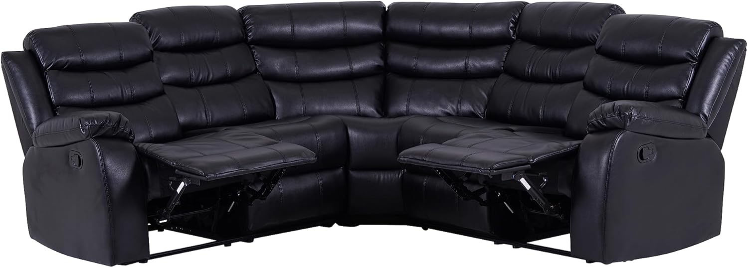 Corner Leather recliner ( 230cm x 230cm) Our black leather recliner corner group sofa offers ultimate indulgence for casual comfort in bonded leather. Recliner corner group sofa is a Modern, chic, classic this recliner corner group sofa as comfortable as it is stylish this sofa not only offers comfort and stability but also additional luxury and maximum relaxation. This recliner corner group sofa offers both comfort and support. Suitable for living room, bedroom, and home theatre room, brass nails set off a classic and luxurious style of decoration * Upholstered in a Luxury Bonded Leather * Furniture Layout For Small Living Room & Large Living Room * Foam-filled seat cushions * Fibre-filled back cushions * Reinforced durable frame * The Recliner End of the Sofa * Very Easy to Assemble * Clean with a Lightly Damp Cloth